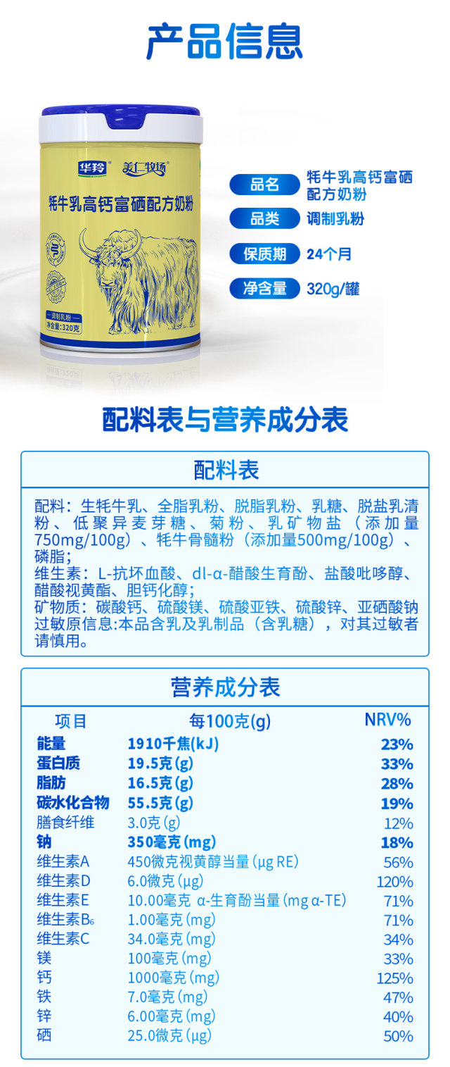 牦牛乳高钙富硒配方奶粉