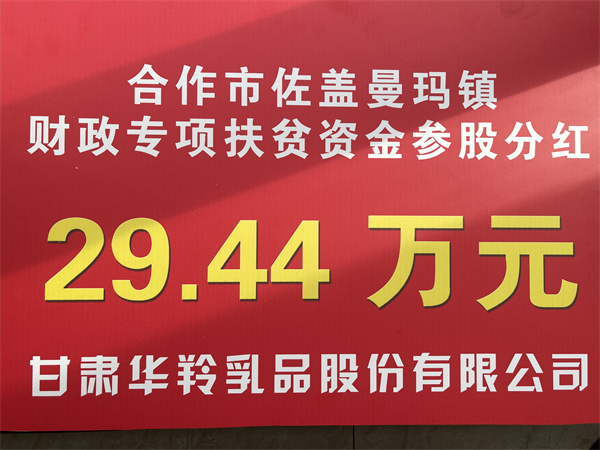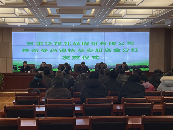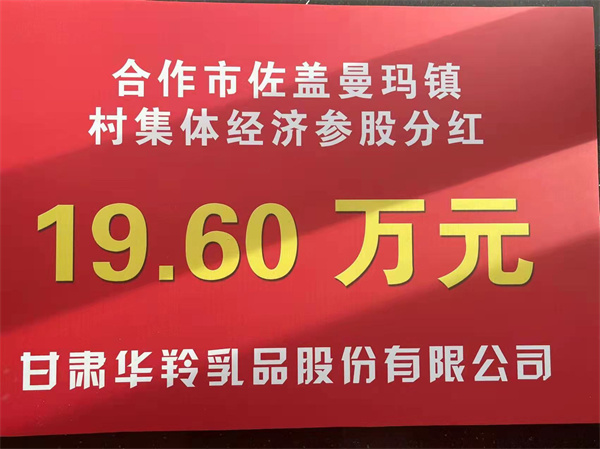 2022年3月1日,甘肃华羚乳品股份有限公司和佐盖曼玛镇共同举行2021年度农牧村扶贫参股资金分红发放仪式,华羚乳品公司为佐盖曼玛镇农牧民群众发放扶贫参股资金49.04万元,农牧民群众领到分红款后脸上洋溢着喜悦的笑容。