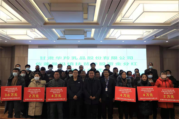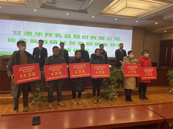 近3年来华羚乳品通过产业带动,乡镇入股的方式累计发放分红资金454万元,切实发挥龙头企业的带动作用,助力脱贫攻坚成果和乡村振兴战略的有效衔接。