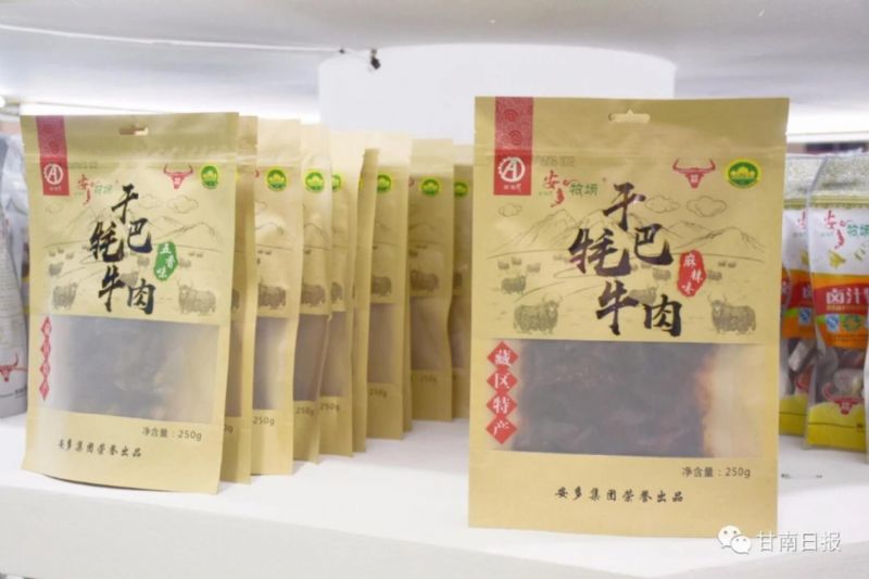 此次亮相兰洽会的企业是甘肃安多清真绿色食品有限公司和华羚乳品股份有限公司。占地108平方米的甘南馆内,除了“安多牧场”牛羊肉精深加工系列产品和华羚集团的乳酪蛋白及酪蛋白磷酸肽系列产品。同时,还有来自全州各县市包括羊肚菌、人参果、手撕腊肉等在内的健康产品和粮油产品。
