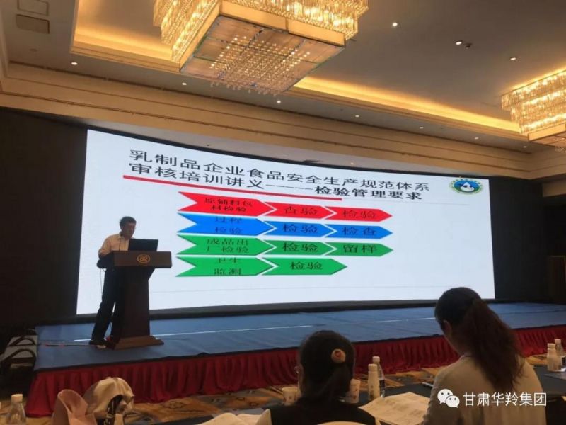 为提高婴幼儿配方乳粉企业的企业管理、生产经营的能力和水平,培养专业性强、具备质量管理能力和懂得体系检查全产业链各方面专业知识人才的需要。2019年4月18日至20日,甘肃华羚乳品股份有限公司参加由中国乳制品工业协会组织的乳制品企业安全生产规范体系检查培训班在重庆市天来酒店隆重举行,本次会议由中国乳制品工业协会副理事长兼秘书长刘美菊主持,中国乳制品工业协会理事长宋昆冈、国家市场监督管理局龙处长以及北京中大华远认证中心主任马立田,主任助理胡军,审定部主任王颖颀,河北省食品检验研究院审查技术部部长吴磊等专家学者出席。