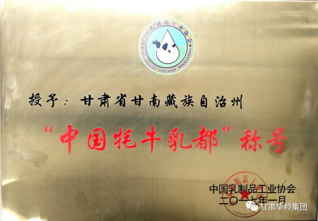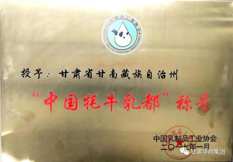 2017年1月,在甘南藏族自治州人民政府、甘南州工信局和甘肃华羚乳品集团在内的多方积极努力下,在中国乳制品工业协会的关心指导下,甘南藏族自治州荣获了“中国牦牛乳都”荣誉称号。