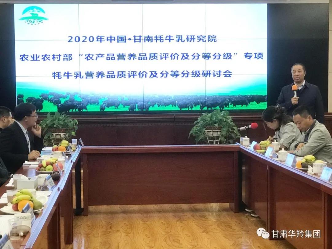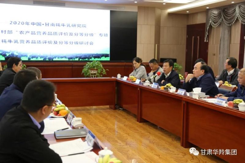 2020年9月18日,2020年中国•甘南牦牛乳研究院农业农村部牦牛乳营养品质评价及分等分级研讨会在甘肃华羚乳品股份有限公司四楼会议室顺利召开。出席会议的有农业农村部食物与营养发展研究所研究员王靖、农业农村部食物与营养发展研究所教授级高工涂顺明、北京联合大学教授闫文杰、农业农村部食物与营养发展研究所工程师韩迪、西北民族大学杨具田、柏家林、陈士恩等教授,甘南牦牛乳研究院院长马忠仁、甘南牦牛乳研究院主任田晓静、州科技局、合作市农业农村局、合作市科技局领导、甘肃华羚集团董事长敏文祥、甘肃华羚乳品股份有限公司董事长敏永祥及甘肃华羚乳品股份有限公司经营管理班子。会议由甘南牦牛乳研究院院长马忠仁主持。